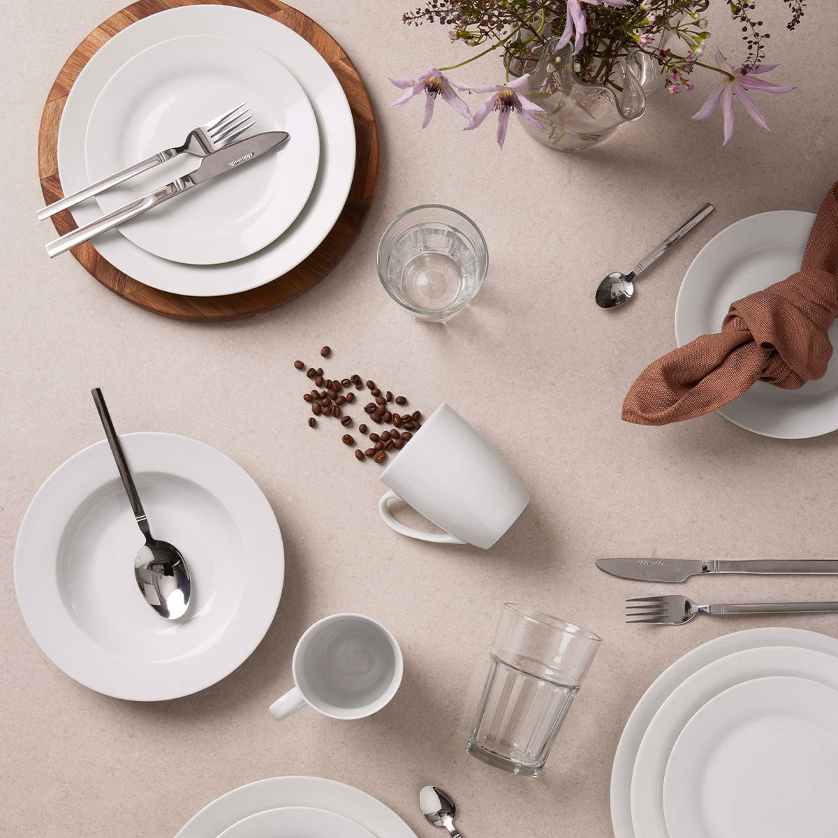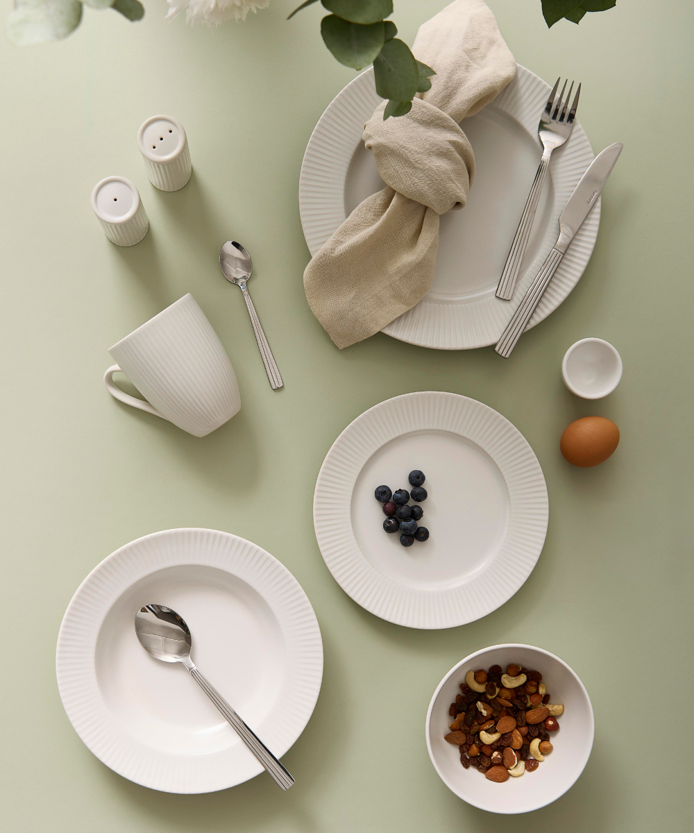 Our dinnerware is made to be used every day – while still being beautiful enough for entertaining guests. Many people choose a classic porcelain set for a timeless table setting, while others prefer modern stoneware with a more raw and Nordic character.