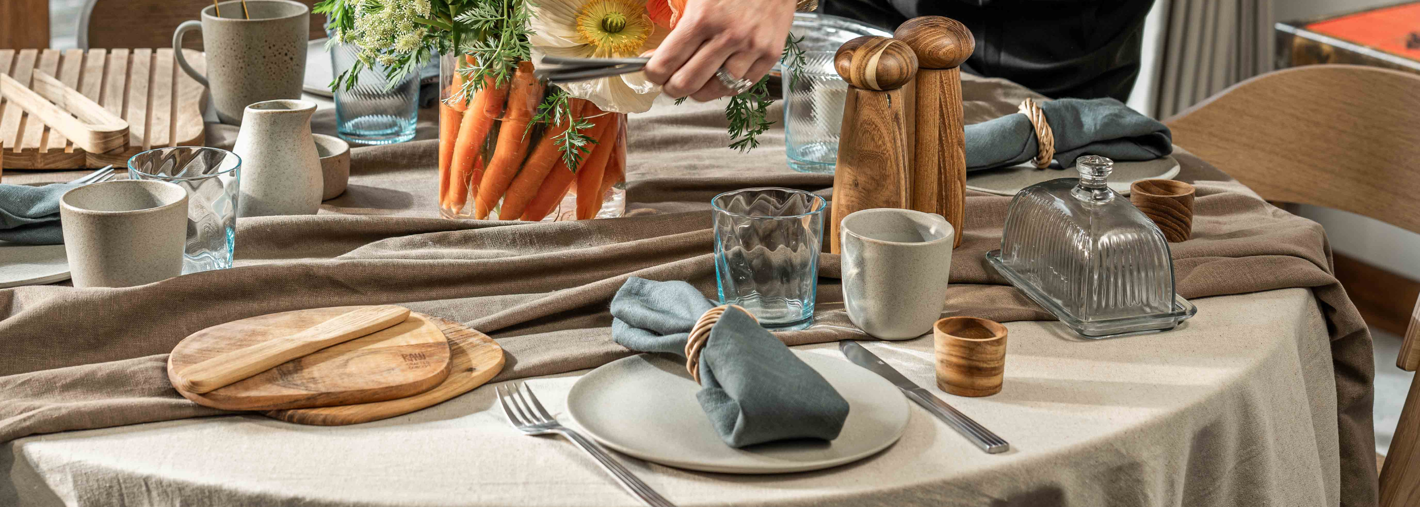 Our dinnerware is made to be used every day – while still being beautiful enough for entertaining guests. Many people choose a classic porcelain set for a timeless table setting, while others prefer modern stoneware with a more raw and Nordic character.
