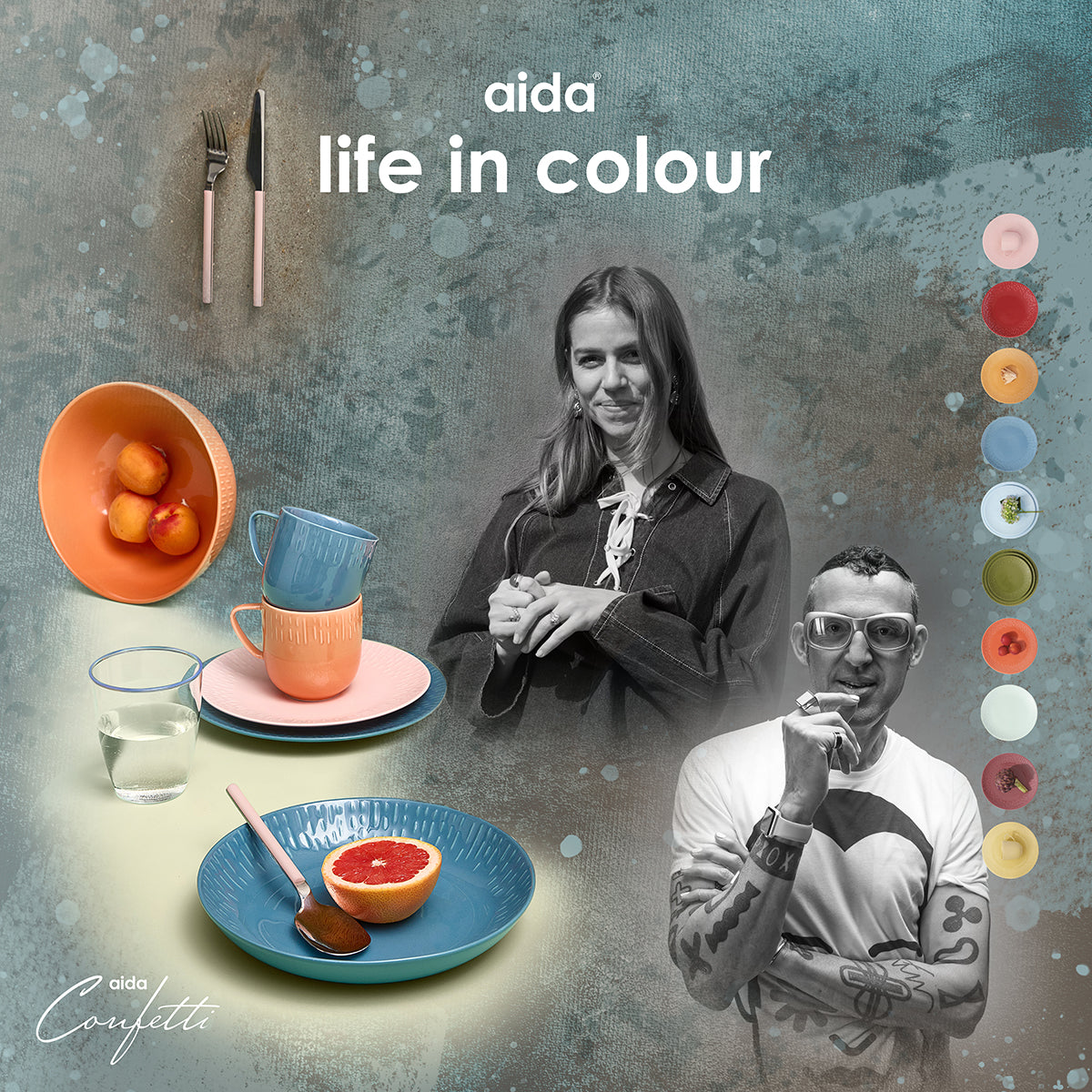 Most recently, aida has created LIFE IN COLOUR, which was designed in collaboration with the renowned industrial designer Karim Rashid. The collection aims to bring more colour to life and everyday experiences. LIFE IN COLOUR consists of four series: Confetti, Karim Rashid, Art and Lido.