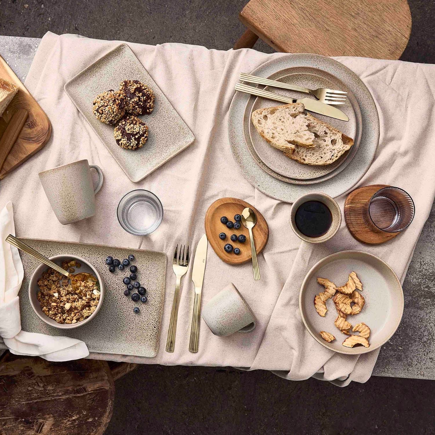 We also recycle the material in the production of RAW Sandy Beige, which is made from a light stoneware mass, which in professional terms is called ‘speckled.’ The stoneware mass consists of surpluses from the production of white stoneware and speckled stoneware. The surplus clay is obtained when the products are cut “clean” and instead of discarding the clay that is cut, it is mixed into a new clay mass. In the Sandy Beige production, at least 50% of the clay is recycled, and we are continuously working to increase the proportion of recycling in the RAW productions.
